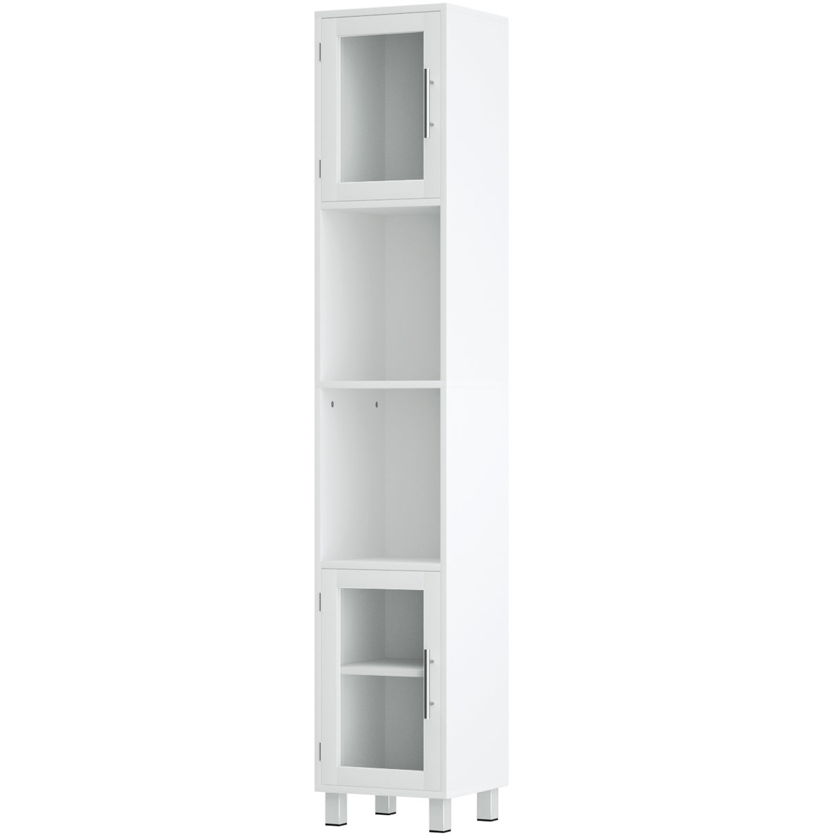 Featuring 2 open shelves and 2 enclosed cabinets with tempered glass doors, this freestanding bathroom cabinet provides ample storage space while taking up little floor space. Besides, you can change the positions of the shelf in the lower cabinet to place items at different heights. This bathroom tower cabinet can also be used as a storage cabinet in the living room, kitchen, study room or laundry to store books, photo frames, wines, glassware, stain cleaners, etc. Made of premium MDF and engineered wood, this bathroom organizer can serve you for a long time. The 4 raised legs made of rustproof & solid aluminium keep the cabinet from water immersion and allow you to clean the floor easily. Moreover, the anti-toppling device at the back of the cabinet offers added security.