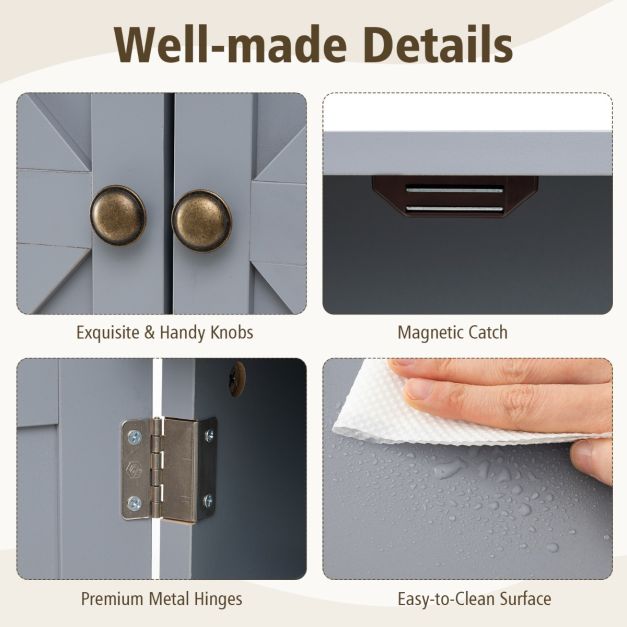 This 2-door wall cabinet will be a functional and decorative addition to your living space. The 2-tier shelf inside the top cupboard, the open floating shelf, and the bottom metal towel bar together provide you with ample storage space. So you can make the frequently used items in great order. The whole cabinet is made of high-grade MDF and heavy-duty metal, ensuring long-lasting service life. And with a modern and minimalist appearance, the cabinet adds a piece of elegance to the surroundings. If you are looking for a wall-mounted cabinet, this 2-door cabinet will be an awesome choice. Multifunctional Storage Space: This 2-door bathroom wall cabinet includes a 2-tier inner shelf, an open shelf, and a hanging rod, offering ample and classified storage space for you. Therefore, you can store multiple things on it, such towel, toiletry, decoration, books, and so on.Wall-Mounted Design: The hanging device on the back makes it easy to mount the bathroom cabinet onto the wall firmly. Also, the wall-mounted design effectively makes full use of limited space and creates sufficient storage space on the vertical wall, saving much of your room floor space.Stable MDF and Metal Rod: Mainly made of high-grade P2 MDF, the wall-mounted cabinet features the high sturdiness and won't easily crack. The painted surface resists wetness, making the wall cabinet ideal for the bathroom. Furthermore, the hanging rod is made of heavy-duty and rustproof metal for long service life.Multiple Suitable Occasions: With an elegant appearance and rustic wood grain/white finish, this bathroom wall cupboard fits different occasions well. Whether in the bathroom, kitchen, living room, or bedroom, the corner medicine cabinet will always be a perfect storage solution.Simple Assembly and Cleaning: Coming with detailed instructions and all necessary hardware, the wall storage cabinet is easy to assemble and install. Moreover, as its surface is smooth and waterproof, the daily maintenance is quite simple just with a damp cloth.