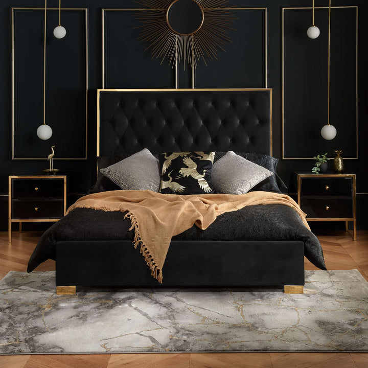 Experience the perfect blend of sophistication and comfort with the Luxury Chelsea Bed, a masterpiece designed to elevate your contemporary bedroom retreat. Its sleek silhouette complemented by striking gold trimmings adds a touch of opulence, creating a serene and stylish sanctuary. Crafted with meticulous attention to detail, this bed ensures both aesthetic appeal and lasting durability, making it a centerpiece that truly defines modern luxury.