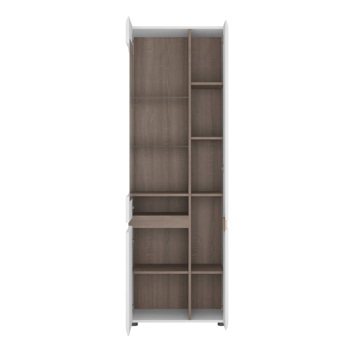 Transform your living space with the Chelsea Living Tall Glazed Narrow Display Unit (RHD) in White with a Truffle Oak Trim, a stunning blend of contemporary design and practical storage. This display unit is perfect for showcasing your favorite decor while seamlessly complementing modern interiors.