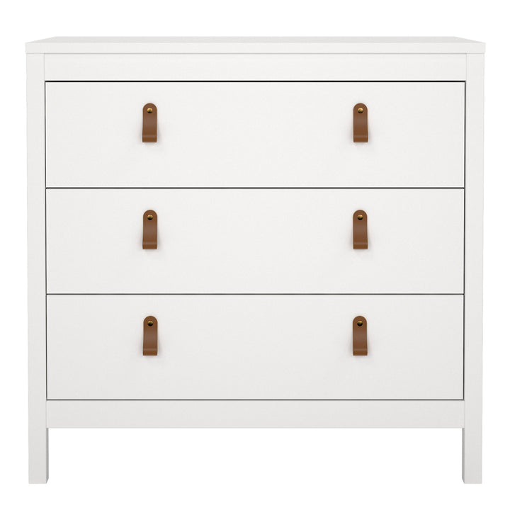 Transform your space with the elegant Barcelona Chest 3 Drawers in White, a perfect blend of modern design and functionality. This stunning chest features a striking white finish complemented by sophisticated brown leather tab handles, offering a unique touch to any room.
