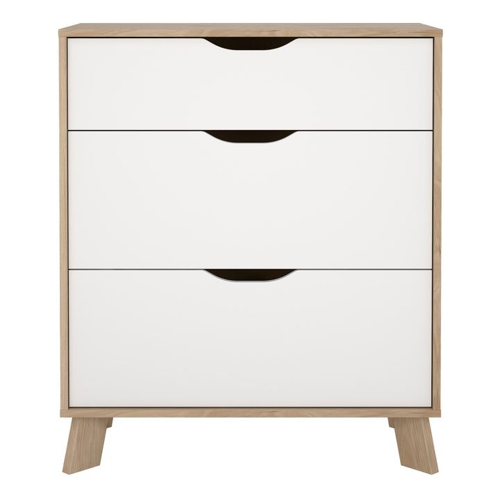 Transform your living space with the stunning Ikast Chest 3 Drawers in Jackson Hickory and White, blending modern elegance with exceptional functionality. This chest not only enhances your décor but also provides ample storage for your essentials.
