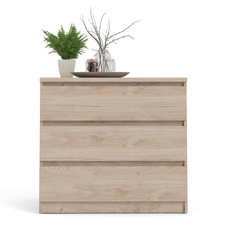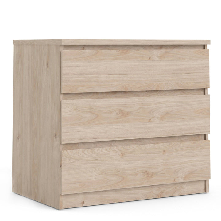 Transform your bedroom with the Naia Chest of 3 Drawers in Jackson Hickory Oak, a perfect blend of timeless design and modern functionality. This exquisite piece not only enhances your décor but also provides ample storage for your clothes and essentials.