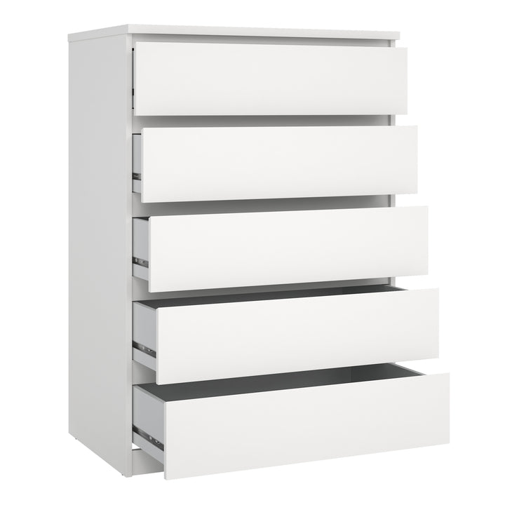 Transform your space with the Naia Chest of 5 Drawers in White, a perfect blend of minimalist design and functional elegance. This stylish chest not only enhances your decor but also provides ample storage for all your essentials.