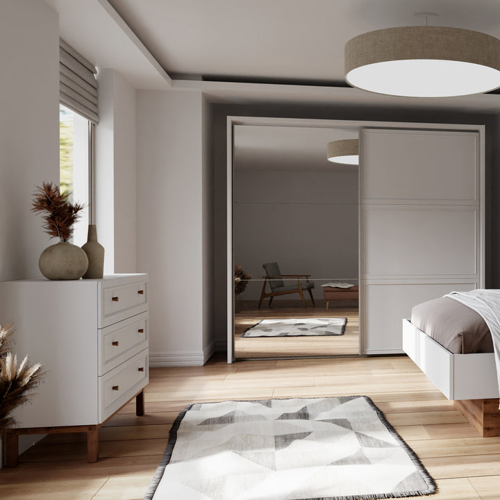 Upgrade your home with the Wensley 3 Drawer Chest in Light Grey and Oak. Modern design, full-extension drawer slides, and chic wooden knob handles.