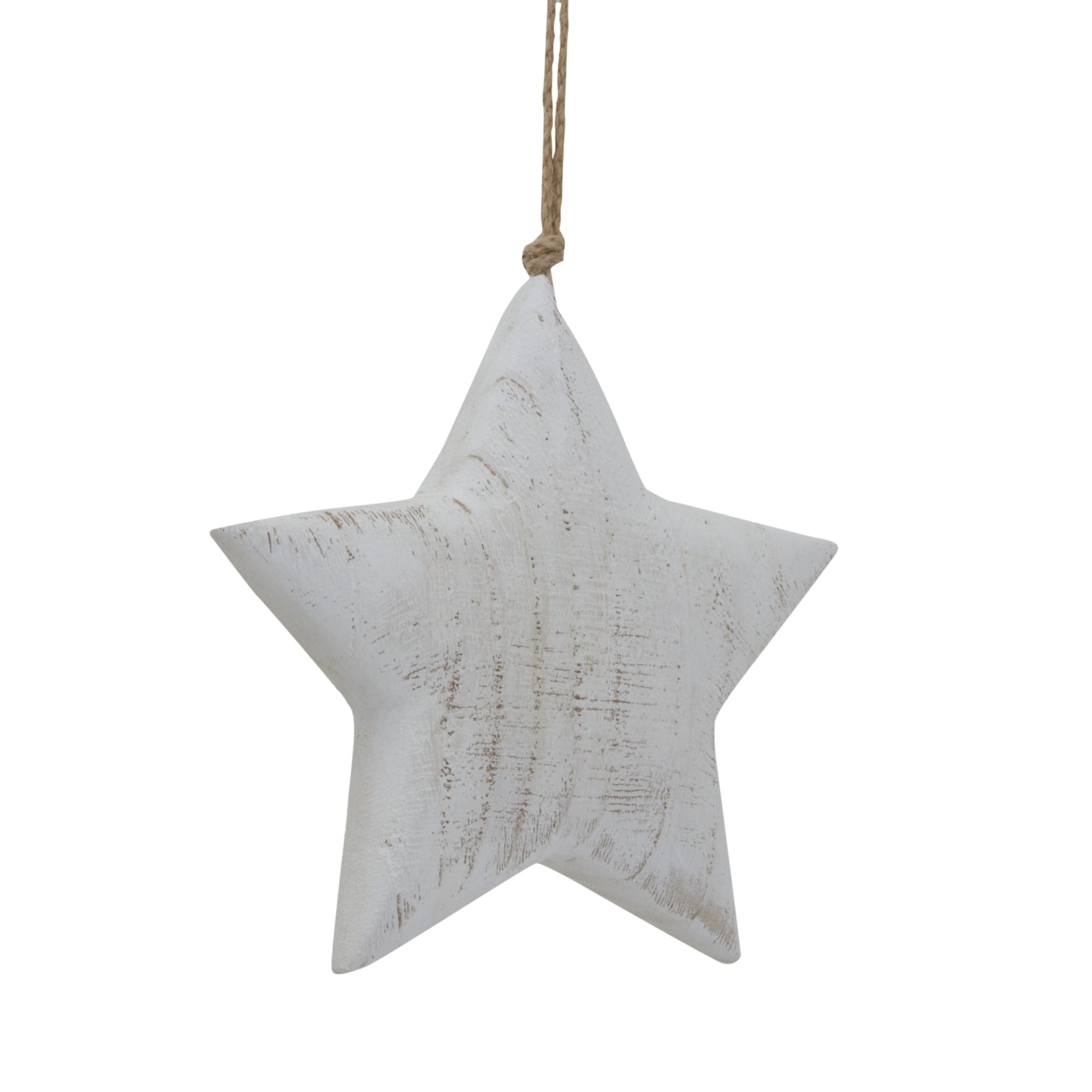 This weathered whitewashed star ornament radiates rustic charm and countryside allure, perfect for creating an inviting atmosphere in any retail space. The distressed finish and generous proportions make it an attention-grabbing focal point that customers will instantly notice. Its weathered patina suggests authenticity and careful ageing, while the clean geometric star design maintains contemporary appeal. The substantial size allows it to stand out whether mounted high on walls or suspended from beams, making it particularly effective in spaces with high ceilings or open-plan layouts. The natural, muted tones complement both modern and traditional décor schemes, offering retailers flexible merchandising options. This piece works beautifully when grouped with wrought iron candle holders, vintage-style wall mirrors, and textured woven wall hangings to create compelling visual displays. Consider pairing with oversized glass hurricane lamps, weathered metal wall plaques, or coordinating smaller star ornaments in varying finishes to build cohesive themed collections. The robust construction ensures longevity in commercial environments, while the universal appeal of celestial motifs guarantees year-round sales potential. This star decoration bridges the gap between statement piece and versatile accent, making it an essential addition to any homeware collection targeting design-conscious consumers.