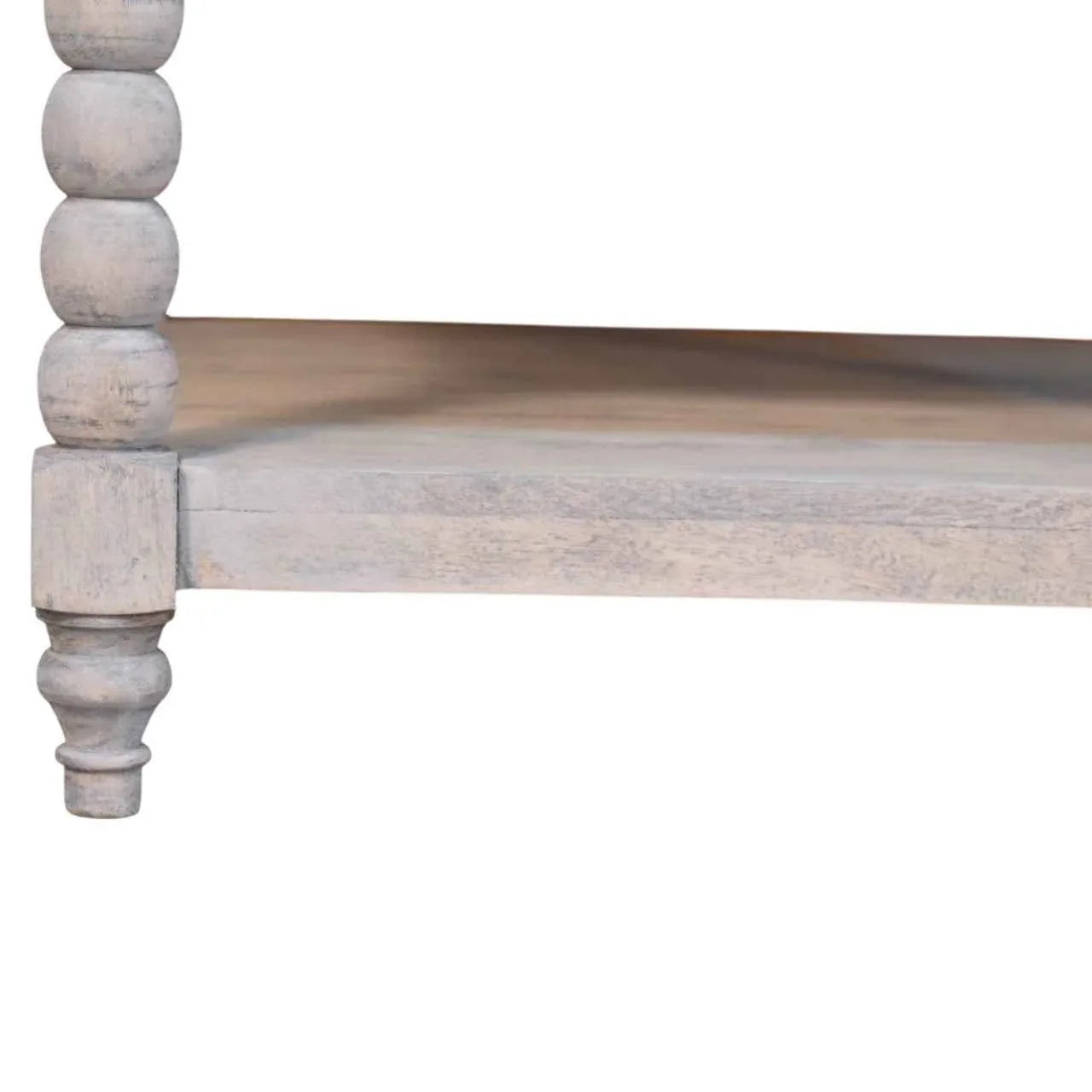 Elevate your living room with the Barclay Coffee Table, crafted from 100% solid mango wood and finished in a soft acid wash for a modern rustic aesthetic. Its bold spindle legs and generous square tabletop offer both visual charm and everyday practicality, while the spacious lower shelf provides additional storage or display space. Ideal for those who appreciate handcrafted elegance with a contemporary twist.