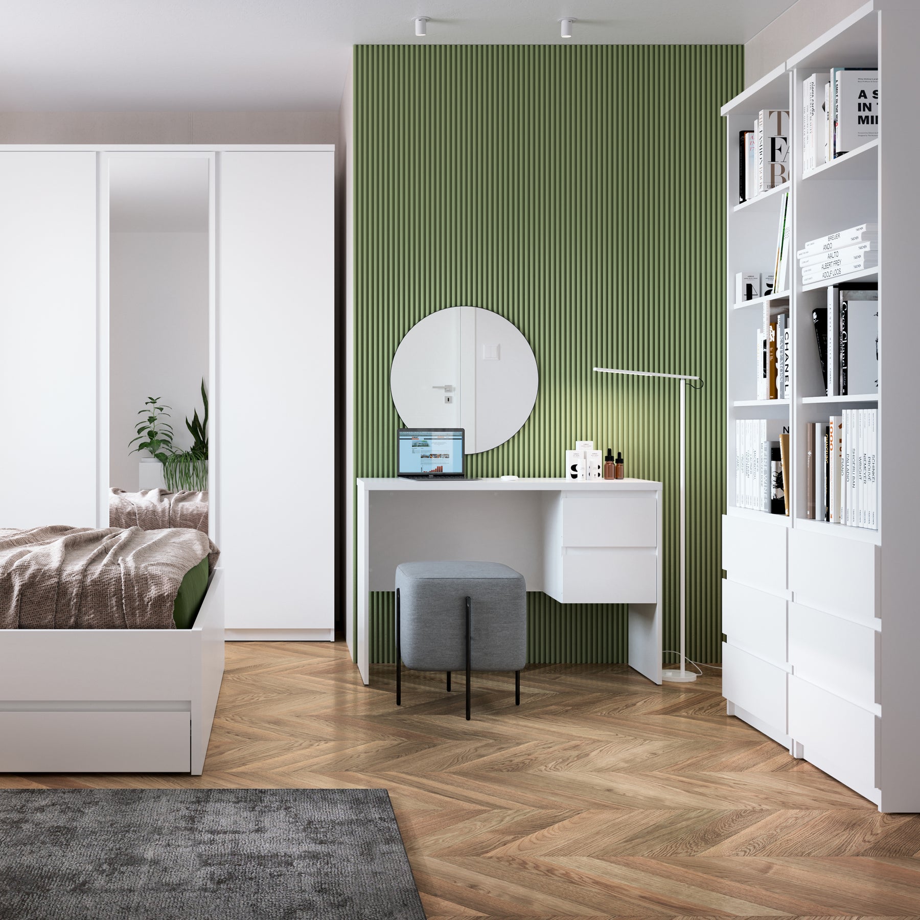 Make working from home fun and stylish with the Fribo Desk 2 Drawer in Alpine White. With its sleek, modern design and compact 110cm width, this white desk fits perfectly into any corner of a bedroom, home office, or living space, while doubling up as a white gaming desk capable of accommodating two 27 inch monitors with ease. Its versatile design makes it ideal for work, study, gaming, or creative projects.