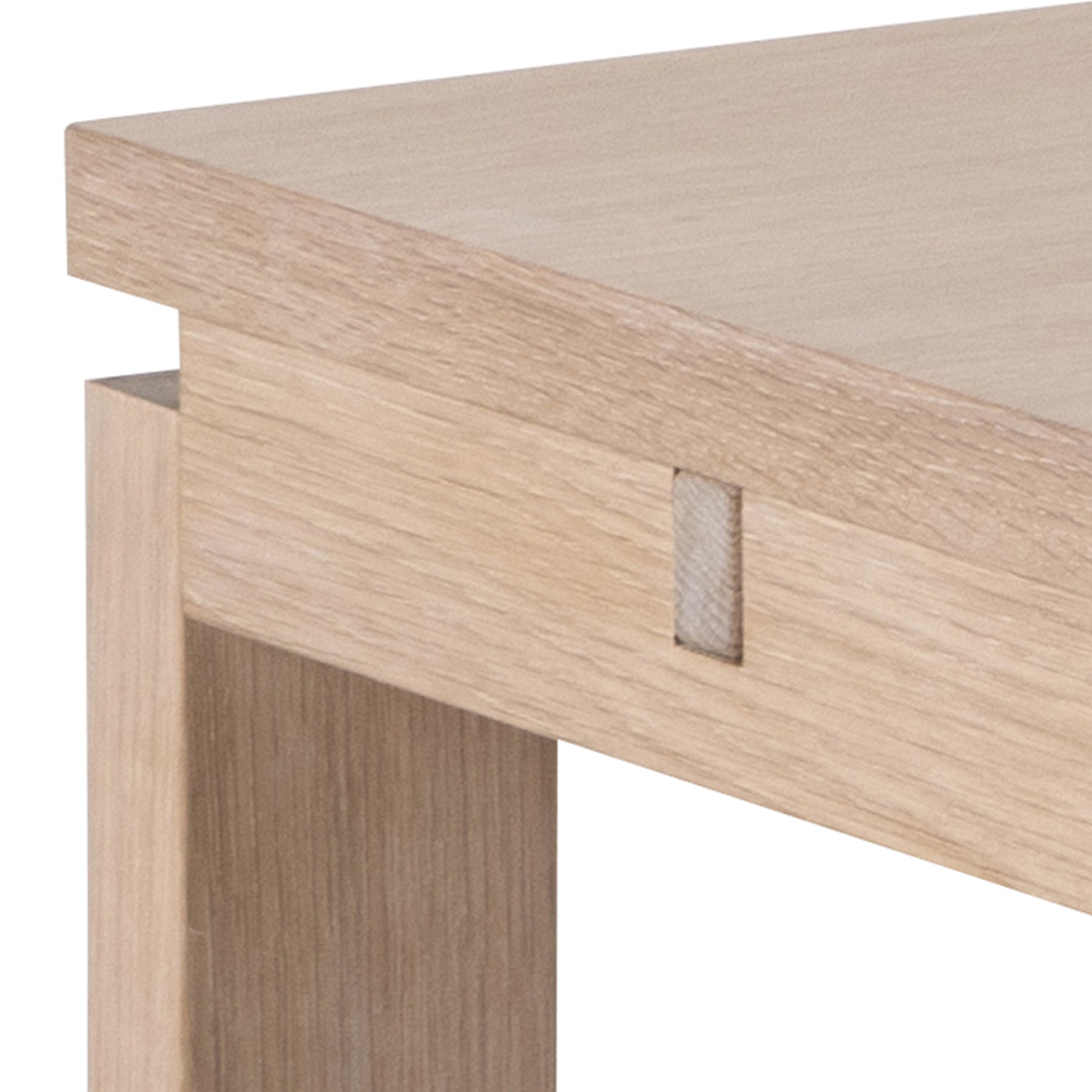 Set the stage for memorable meals with this sophisticated dining table. The white pigmented oiled oak effect top and solid base are designed for both beauty and practicality, and the included extension leaves provide extra space for hosting with ease.
