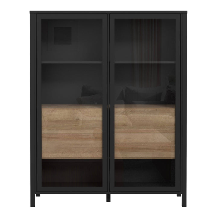 Transform your living space with the High Rock Extra Wide Display Cabinet in Matt Black/Riviera Oak, where contemporary industrial design meets functional elegance. This stunning piece captivates with its unique blend of warm Riviera oak and sleek black accents, making it a showstopper in any room.