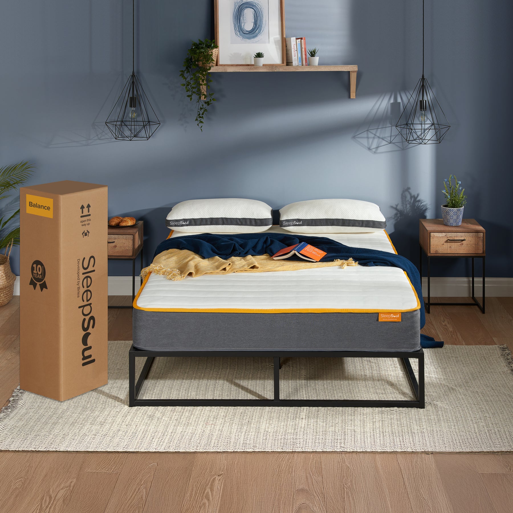 The SleepSoul Balance Mattress arrives vacuum-sealed and conveniently boxed, making delivery and setup effortless. Simply release it from the packaging and watch as it expands within 2 hours, reaching full comfort in 24 hours. Please ensure your bed frame slats are no more than 9cm apart for optimal mattress performance.