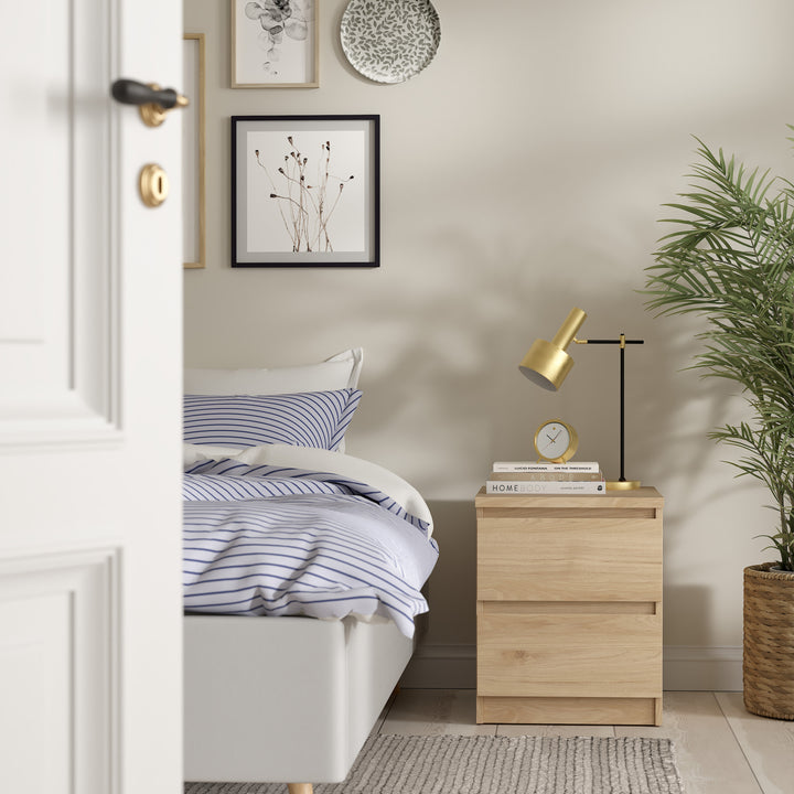 Features: The 2 spacious drawers glide open effortlessly, thanks to premium ball-bearing runners, offering practical storage to keep clutter at bay. The warm oak tones suit a range of interior palettes, particularly when paired with other wooden furniture or neutral curtains and carpets. Its compact design ensures it fits perfectly beside your bed without taking up too much space, making it ideal for smaller rooms or apartments.