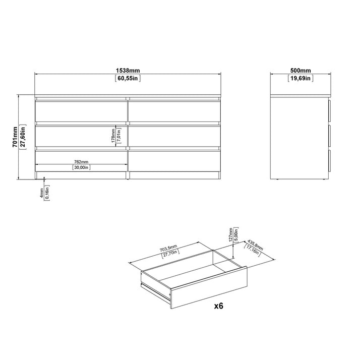 Transform your living space with the Naia Wide Chest of 6 Drawers. Order now and experience the perfect blend of style and functionality!