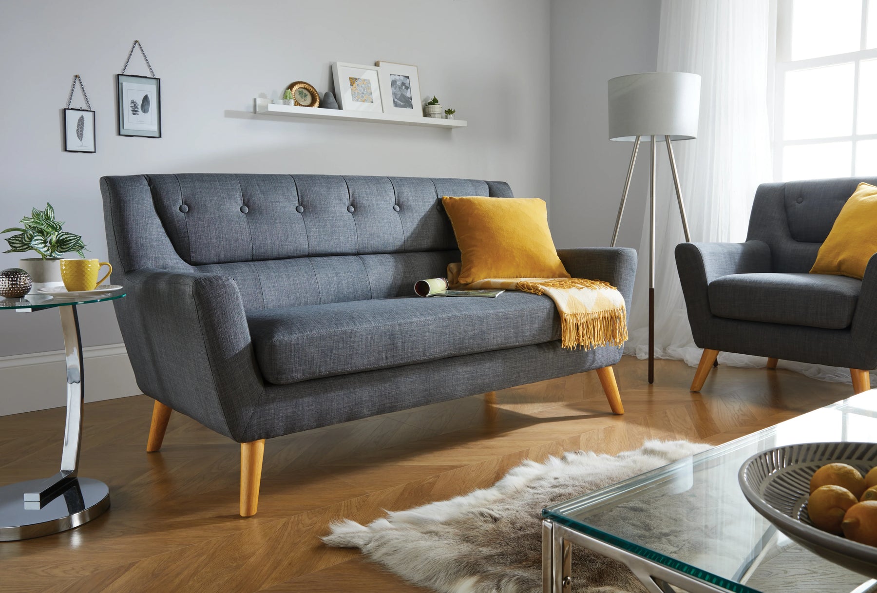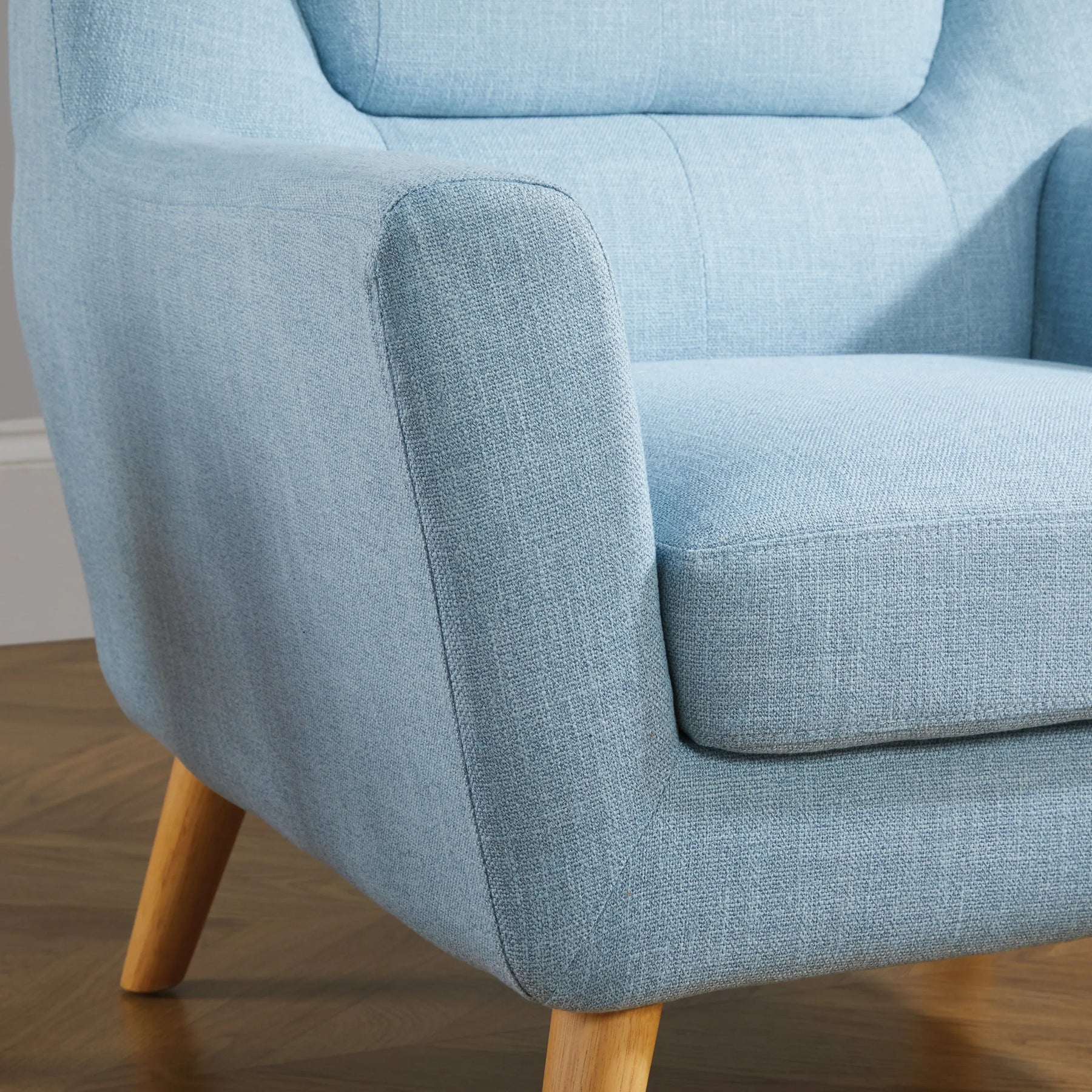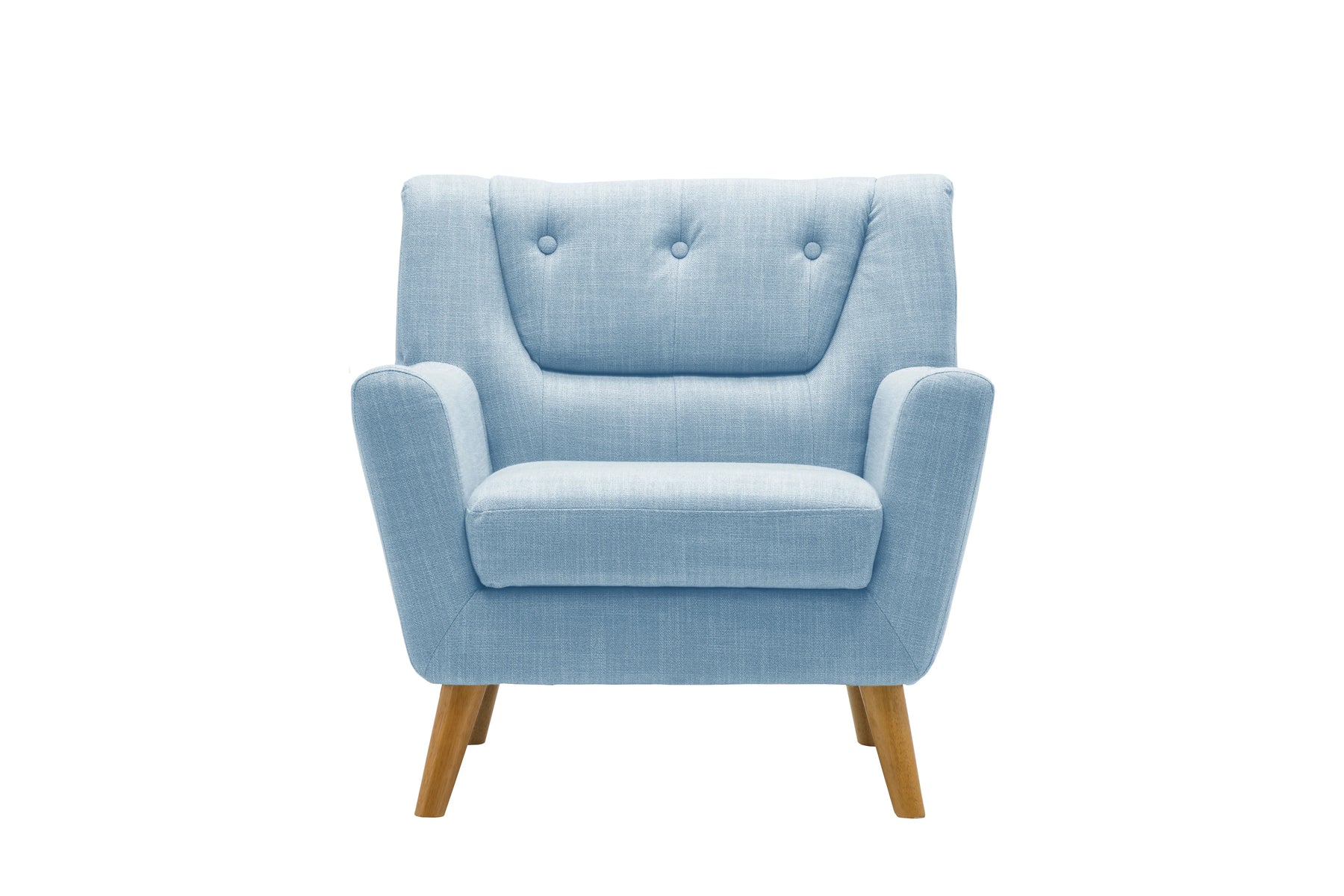 Create a living room centerpiece with the Lambeth sofa range from Birlea. With streamline shapes and classic button back backrest this retro inspired sofa will add a cool, contemporary finish to any room setting. The Lambeth sofa range is available in grey or duck egg blue finish with a co-ordinating medium, large sofa and armchair available within the range. Please note that the legs for the Lambeth are contained within a zipped compartment in the base prior to assembly. The maximum weight load for this sofa is 100 kg. Retro and contemporary Elegant wooden legs, minimal & simple assembly required, for your convenience