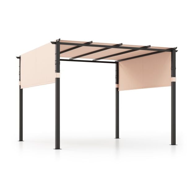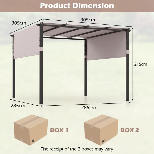 305 x 305 cm Flat Top Pergola with Retractable Canopy and Heavy-duty Metal Frame Beige - TidySpaces
