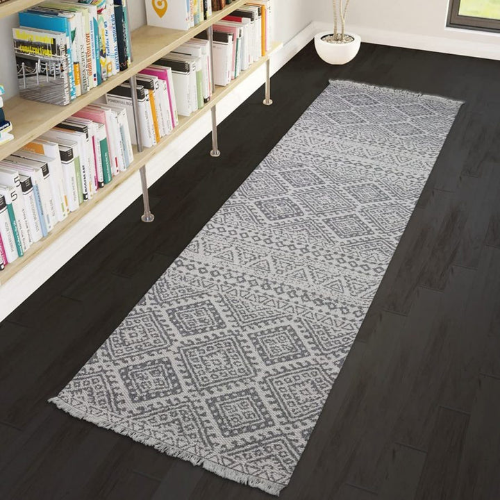 Enhance your living space with this exquisite Cotton Rug featuring an Aztec geometric pattern and playful tassels. Combining style and functionality, this stunning rug is the perfect addition to any room in your home. Crafted from 100% high-quality cotton, this flatweave rug is not only soft underfoot but also designed to withstand everyday use.