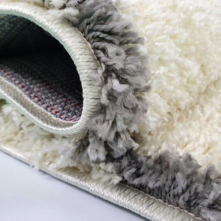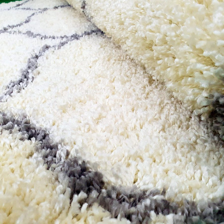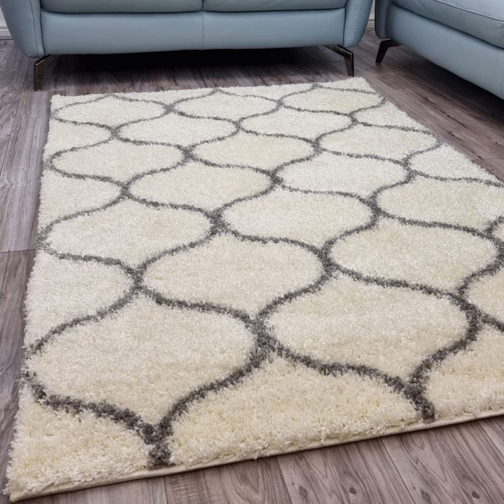 Cream and Grey Fluffy Shaggy Rug Trellis Pattern - TidySpaces