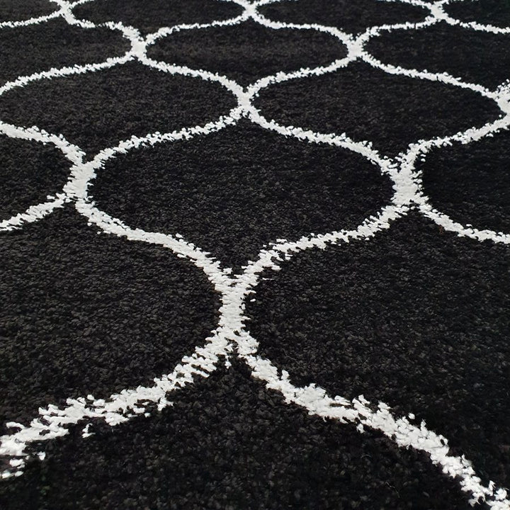 Black and White Fluffy Shaggy Rug Trellis Pattern Black White - TidySpaces
