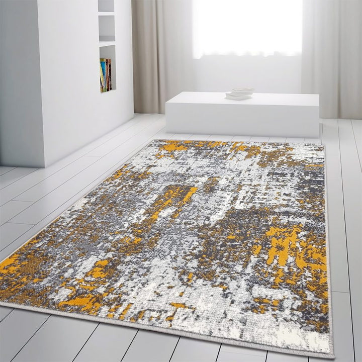 Marble Abstract Rug Grey Mustard Yellow Distressed Pattern Soft Carpet - TidySpaces
