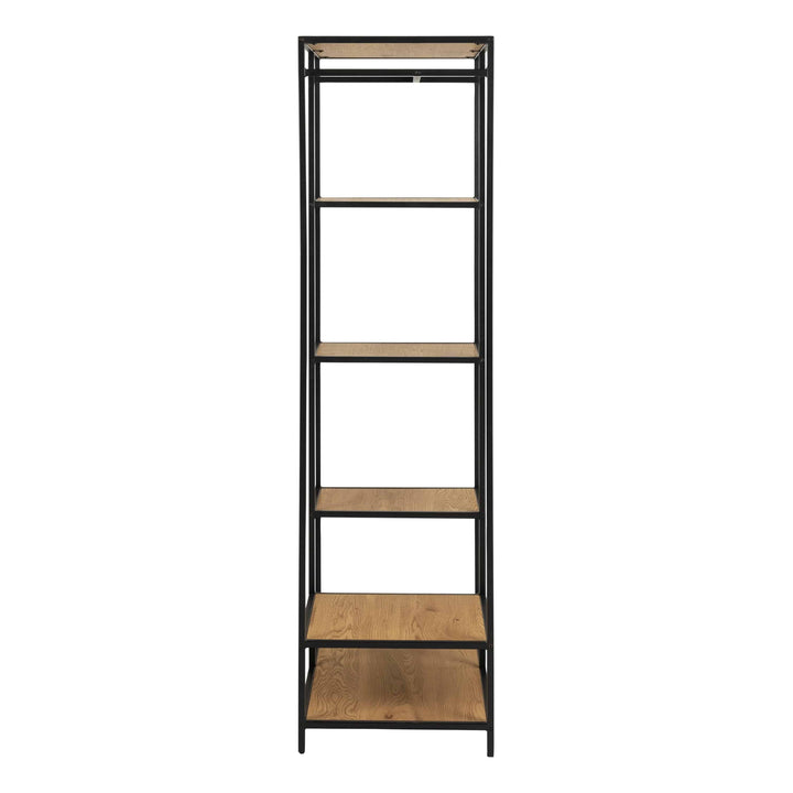 Maximize your storage with this stylish clothes rack, which features a durable matte black powder-coated steel frame and base. It comes equipped with five shelves finished in matt wild oak, providing ample space for organizing accessories and folded clothing. The clothes bar is perfect for hanging items, ensuring your wardrobe essentials are neatly displayed and easily accessible.