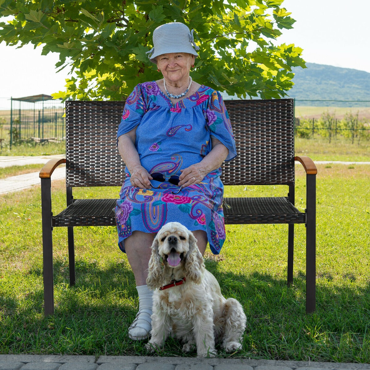 2 Seater Wicker Leisure Loveseat with Acacia Wood Armrests - TidySpaces