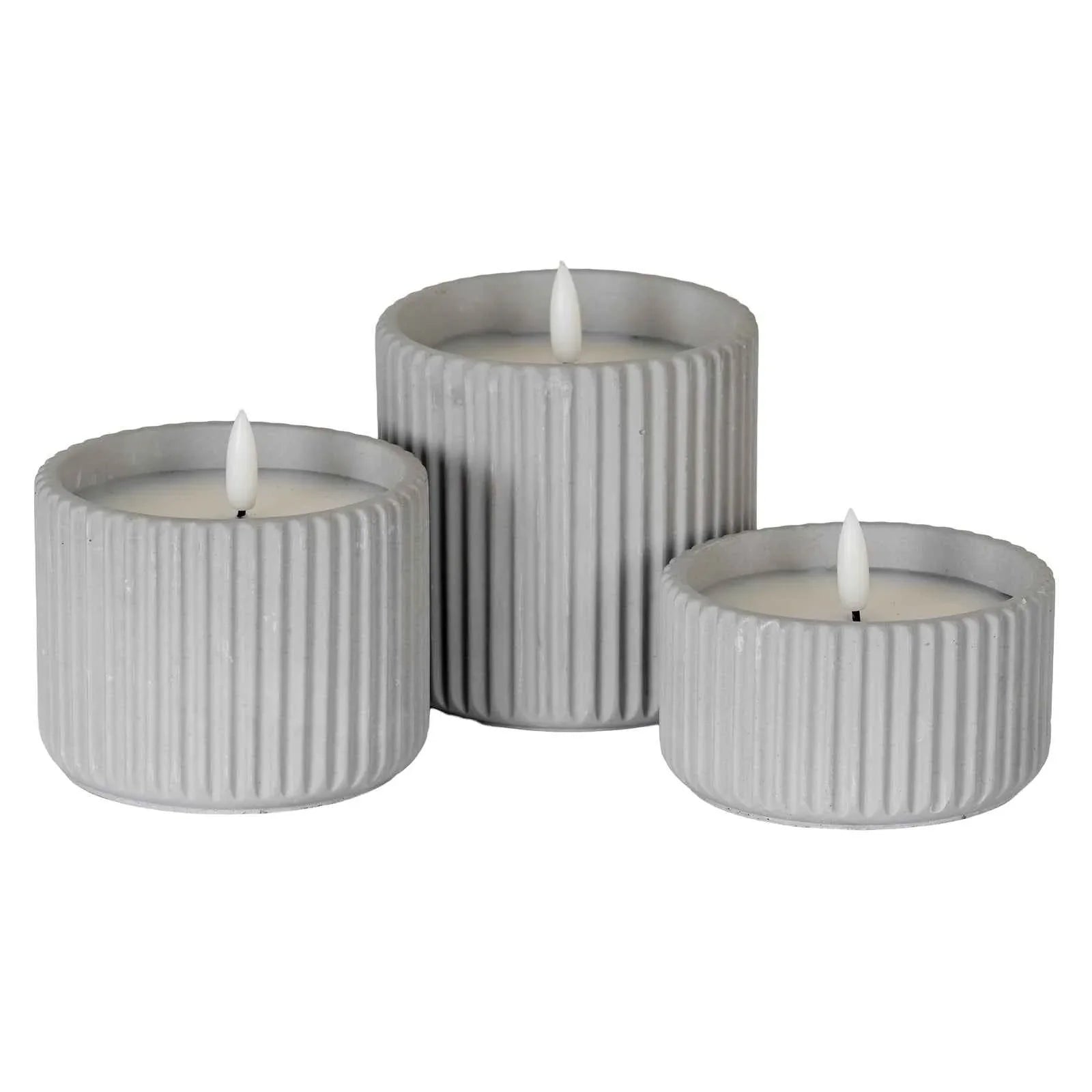 Immerse your customers in atmospheric radiance with this chalk ribbed medium LED candle from the Luxe Collection Natural Glow series. The artisanal craftsmanship is evident in every detail of this cylindrical masterwork, where delicate vertical ribbing creates an interplay of light and shadow across its pristine chalk-white surface. When illuminated, the realistic flickering LED flame casts a warm, ambient glow that dances within the textured contours, creating a cosy atmosphere without the worry of an open flame. This stunning piece marries rustic charm with refined minimalism, making it an ideal centrepiece for dining tables, mantels, or shelving displays in both classical and modern interiors. The 7-hour timer function offers practical convenience while maintaining the authentic appearance of genuine wax, allowing for effortless enjoyment of its soothing luminescence. For a cohesive and curated look, pair this medium-sized candle with its smaller and larger counterparts from the same collection, creating a graduated display that adds dimension and visual interest to any space. The Natural Glow collection also complements other stone-inspired pieces such as the Athena Stone Amphora Pots or the Ravenna Column Table Lamp.